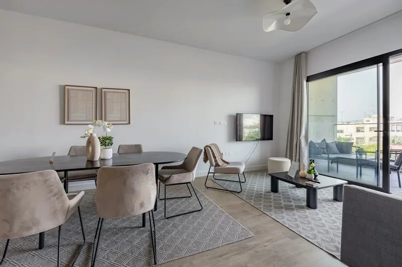 Apartmán 201 v nové budově je světlý, moderní dvoupokojový byt s velkým balkonem s výhledem na město a přístupem ke společnému střešnímu bazénu, který mohou hosté během pobytu využívat.